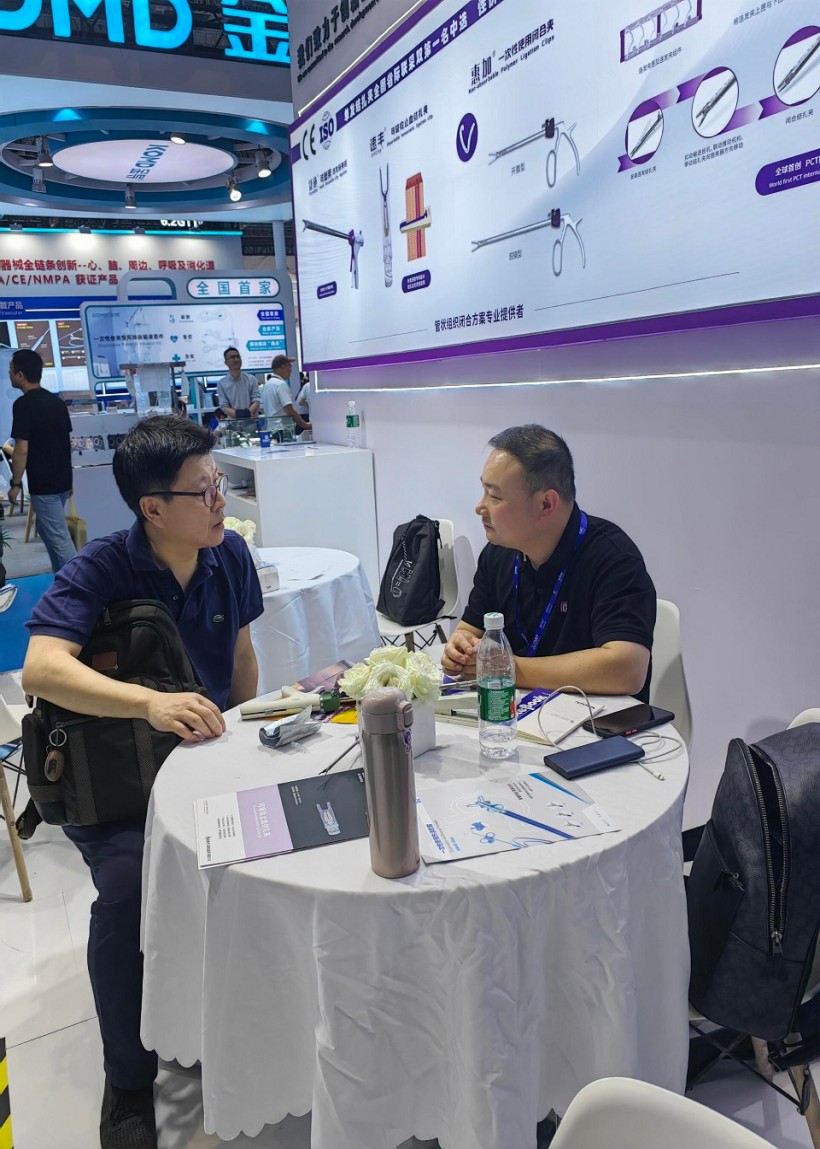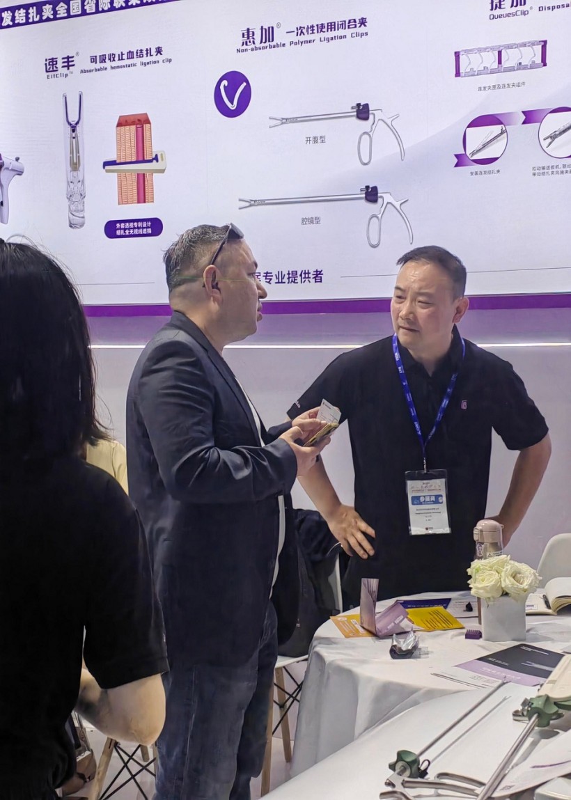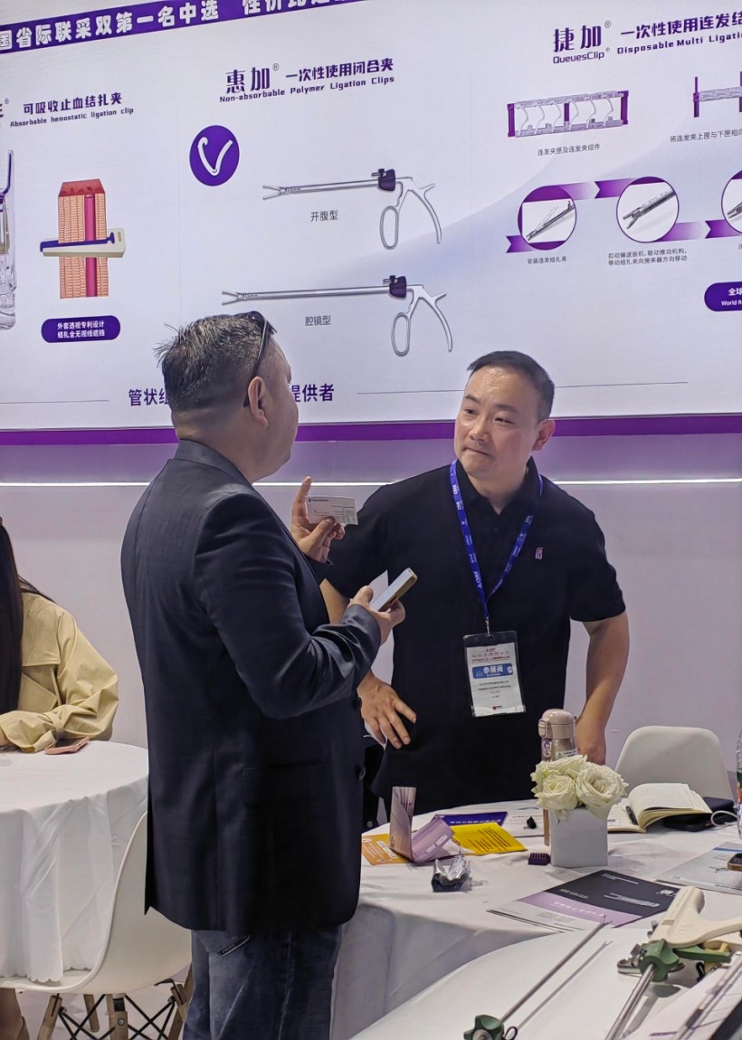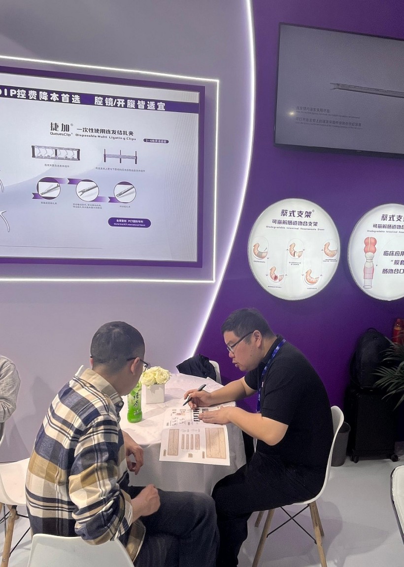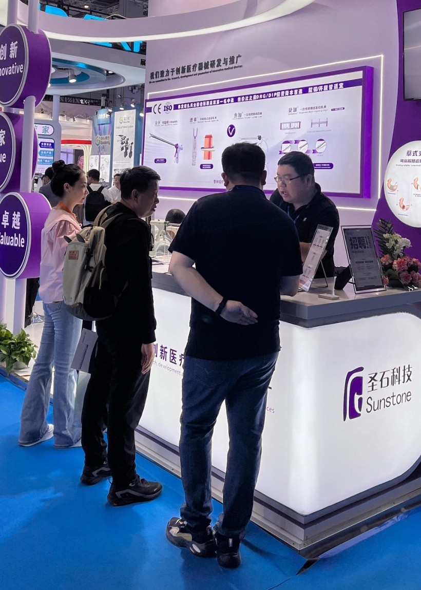 圣石同期展示的獨創(chuàng)產品又一次聚焦了眾人目光。全球首創(chuàng)捷加?一次性使用連發(fā)結扎夾及配套捷施?連發(fā)施夾鉗,其獨特的可重復使用連發(fā)鉗專利設計,以及“2-6枚的連發(fā)夾靈活選裝”專利技術不僅降低耗材使用成本,更通過流暢的操控性適配腔鏡復雜場景需求。圣石與浙大邵逸夫醫(yī)院聯合研制,可應用于腸道吻合與轉流的創(chuàng)新產品蔡式支架?“可崩解腸道吻合器”使此項全球創(chuàng)新術式配套產品具有吻合時間短、無永久殘留異物、不破壞吻合口粘膜下血管,并能預防吻合口漏、可避免人工肛門及二次手術、治療周期縮短、減少患者生理心理創(chuàng)傷等多項臨床優(yōu)勢。